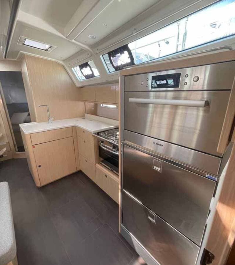 - GalleyDishwasherGas bottlesHot waterKitchen utensils (Galley equipment, cutlery)Refrigerator