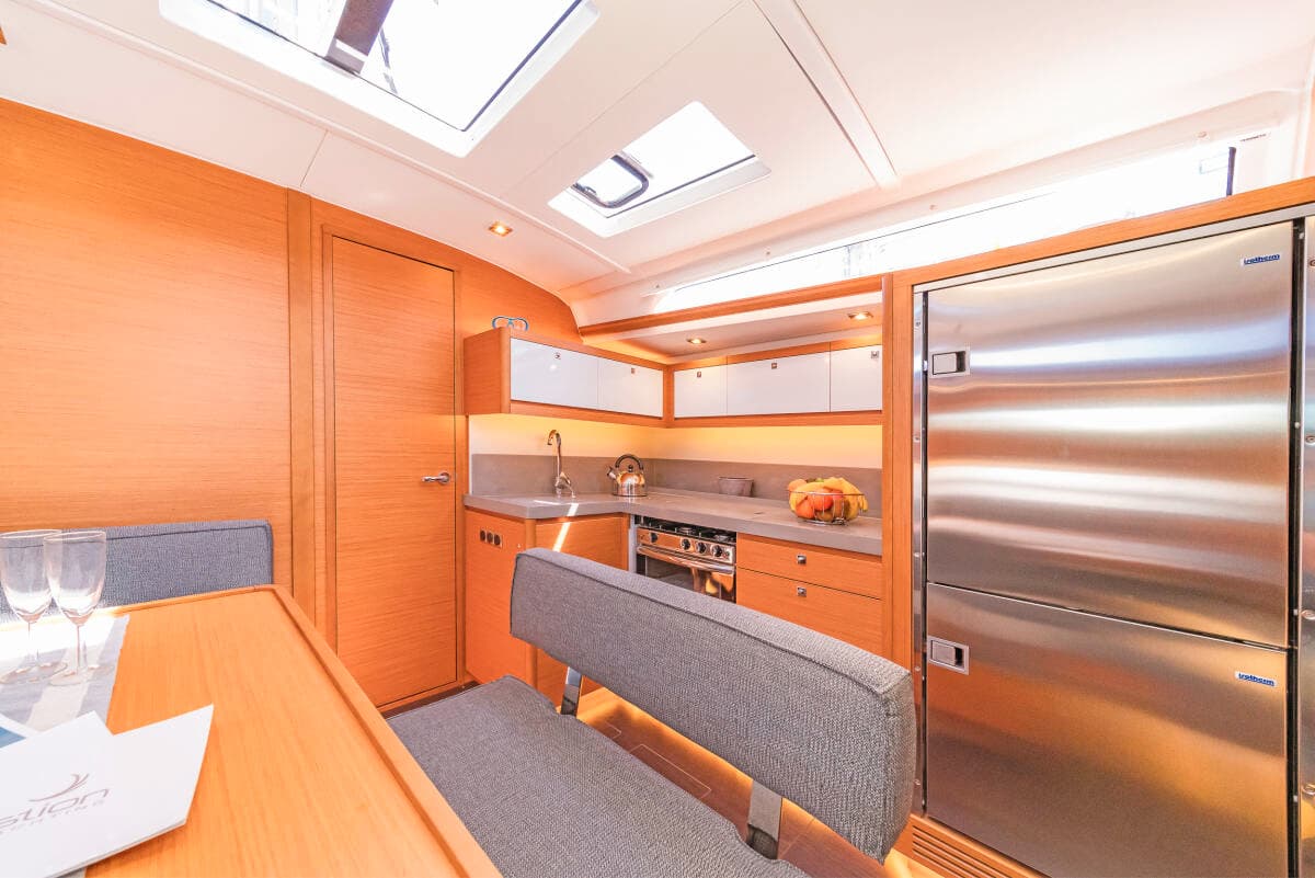 - DeckBathing platformBimini topDinghy with outboard engineGangwayGrill/Barbecue/PlanchaHydraulic lifting swimming platformSprayhood