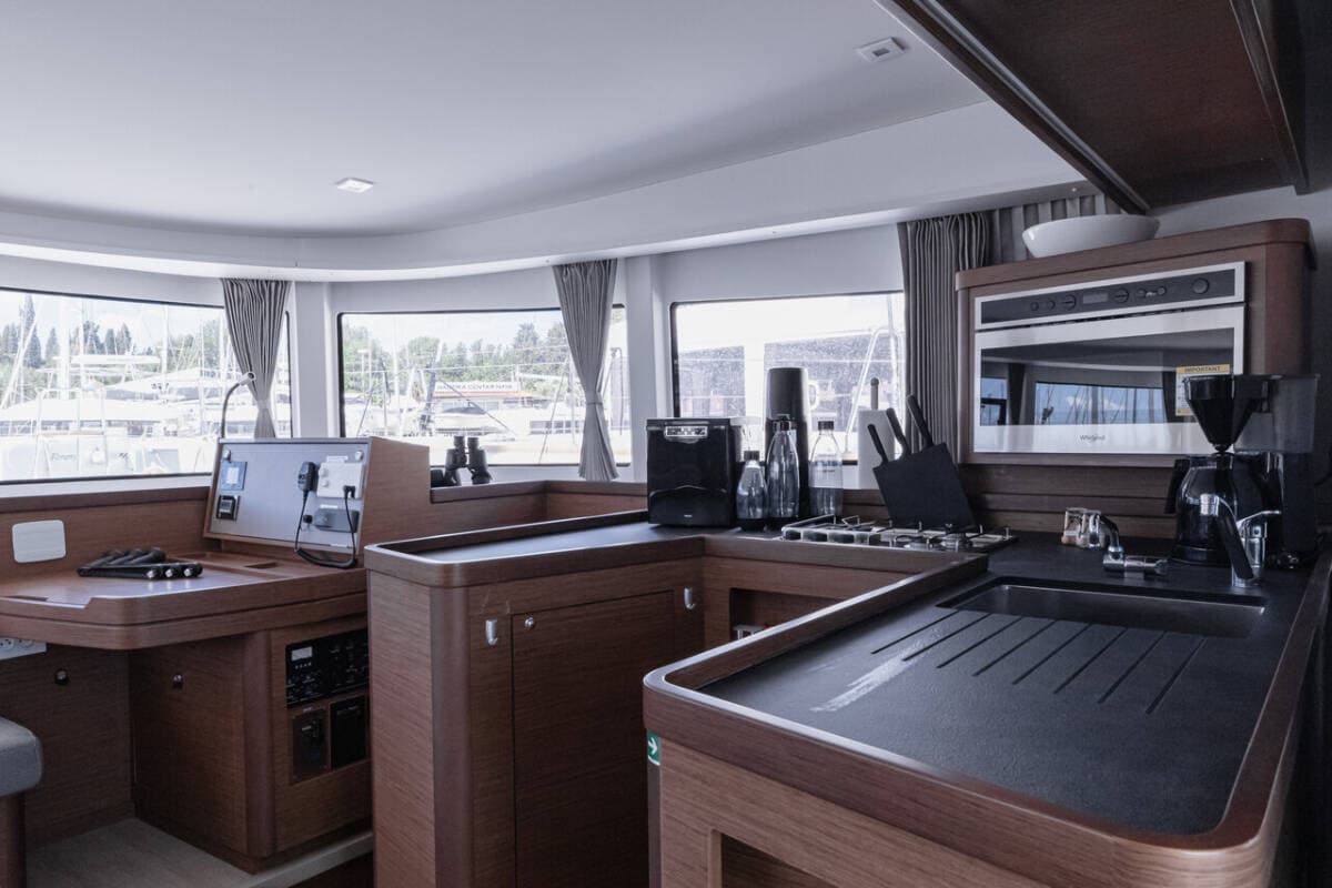 - GalleyCoffee machineFreezer Hot waterIce maker Kitchen utensils (Galley equipment, cutlery)MicrowaveOvenRefrigerator Stove