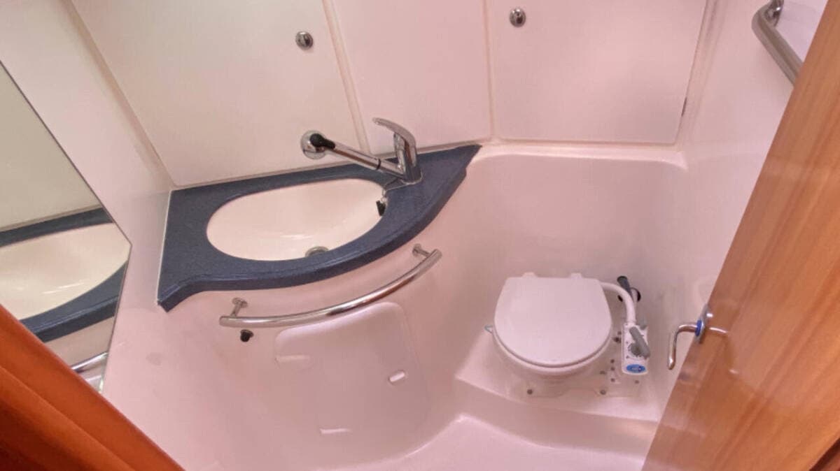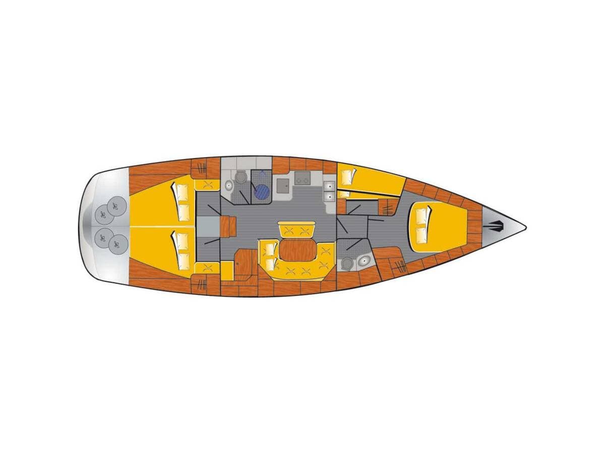 - DeckAnchorBilge pump - MechanicBlack ballBoat hookBosun's chair (Safe seat) (boatswain's chair)Cockpit tableCockpit/stern, outside showerDeck brushElectric anchor windlassFendersMooring ropes Spotlight / HeadlightsSprayhood