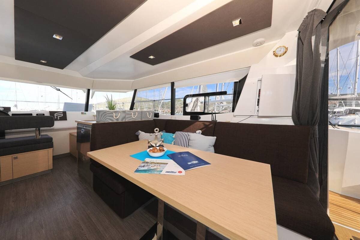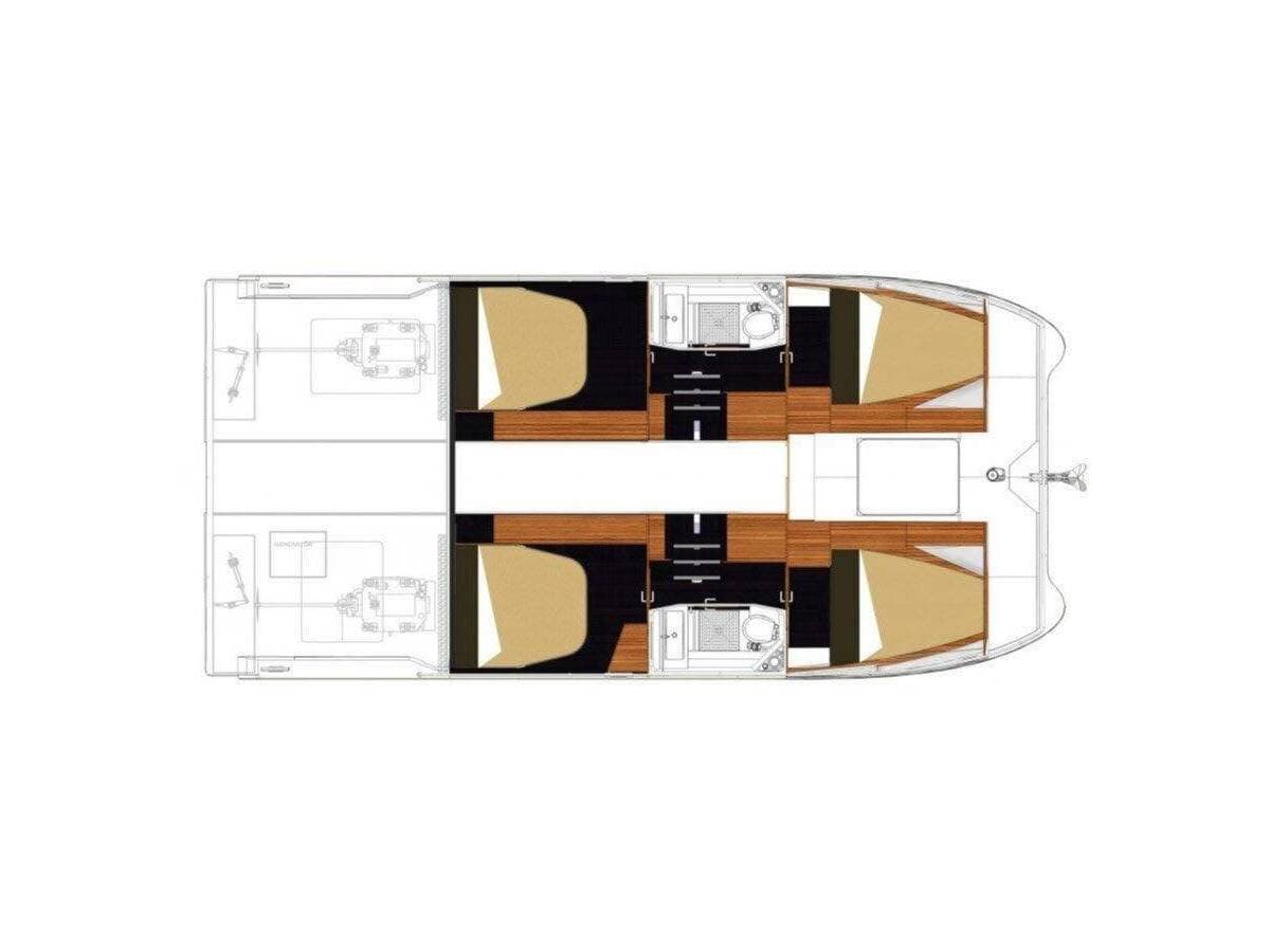 - DeckAnchor lineAnchor swivelBimini top Black ballBlack conusBoat hookCanister for waterCockpit tableCockpit/stern, outside showerDavitDinghyDinghy (byboat) pumpElectric anchor windlassFendersGangwayHawserImpeller, V-belt, oilfilterJerry cans for dieselMain anchor Mooring ropes Plastic bucketRepair box for dinghyRound/globular fenderSpotlight / HeadlightsSpring lineTeak cockpitWater hose