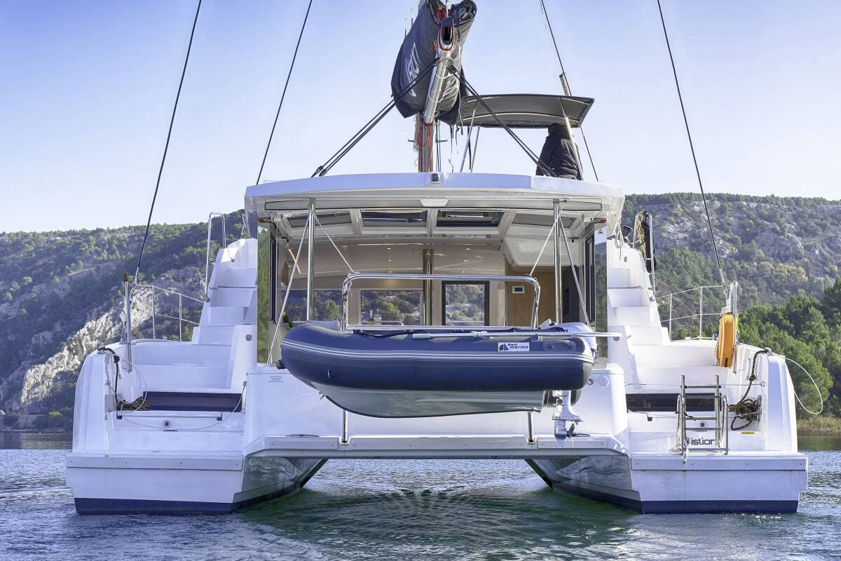 - DeckAnchorBimini Top - MiniBlack ballBlack conusBosun's chair (Safe seat) (boatswain's chair)Cockpit grillCockpit tableDinghy with outboard engineElectric anchor windlassFendersFlybridgeGangwayHard Top BiminiSprayhoodSwimming ladderWinch handles