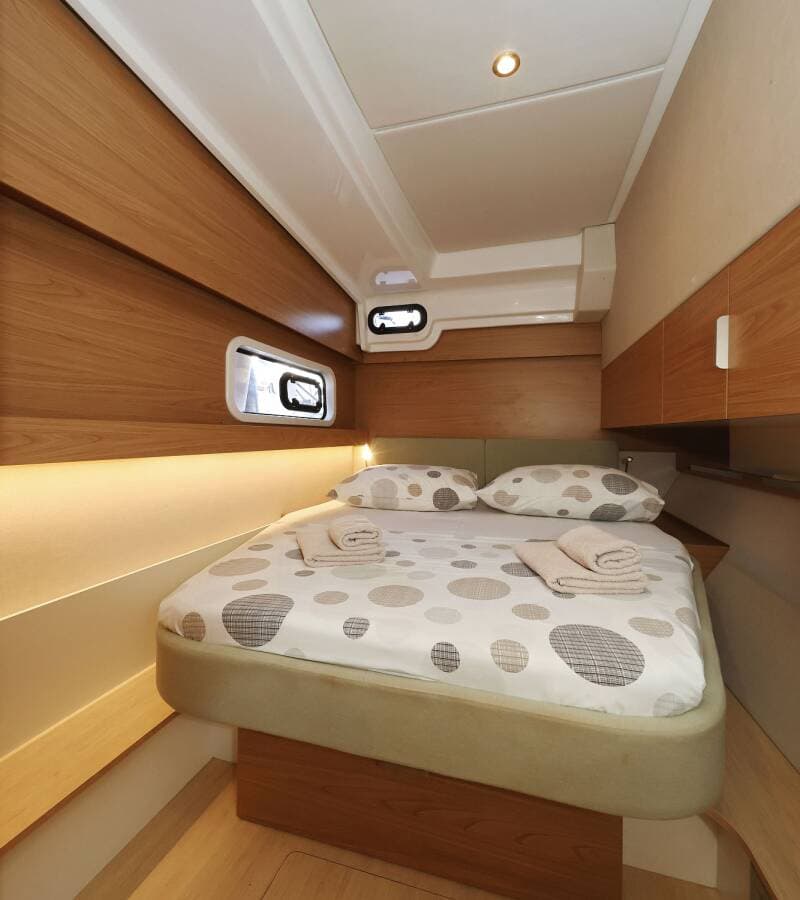 - DeckBathing platformBimini topCockpit tableCockpit/stern, outside showerDinghyForward cockpitGrill/Barbecue/PlanchaRemote control for anchor winch with chain counter at helmSprayhood