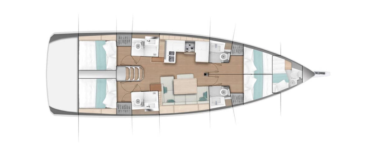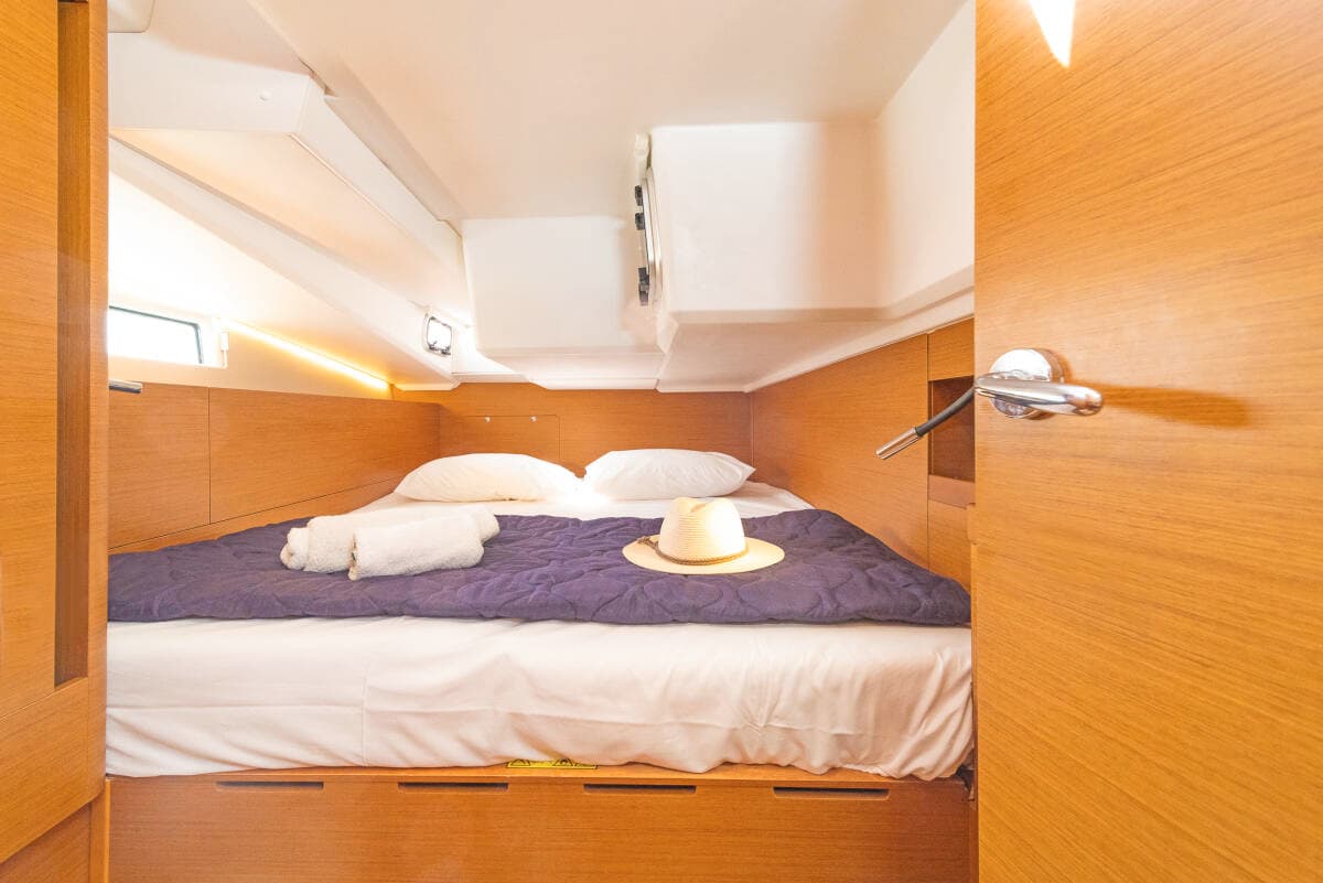 - DeckAnchor with chainBathing platformBilge pump - MechanicBimini topBow showerCockpit tableCockpit/stern, outside showerDinghy with outboard engineElectric anchor windlassFendersGangwayGrill/Barbecue/PlanchaSpare anchor (Reserve, Auxiliary anchor)SprayhoodSwimming ladder