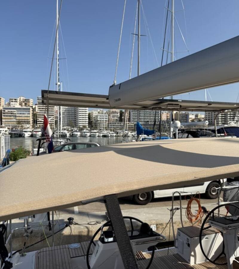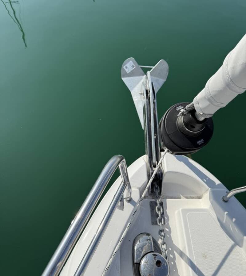 - DeckAnchor lineAnchor swivelBimini topBlack ballBlack conusBoat hookBosun's chair (Safe seat) (boatswain's chair)Canister for waterCockpit grillCockpit table Cockpit/stern, outside showerDavitDinghyDinghy (byboat) pumpElectric anchor windlassFendersGangwayHawserImpeller, V-belt, oilfilterJerry cans for dieselMain anchor Mooring ropes Plastic bucketRepair box for dinghyRound/globular fenderSpare anchor (Reserve, Auxiliary anchor) Spotlight / HeadlightsSprayhoodSpring lineTeak cockpitWater hose
