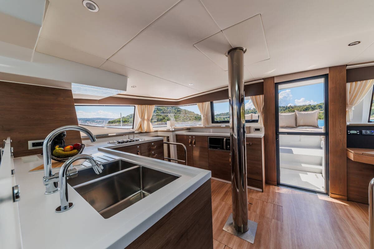 - GalleyCoffee machineDishwasherFreezerHot waterKitchen utensils (Galley equipment, cutlery)OvenRefrigerator Stove