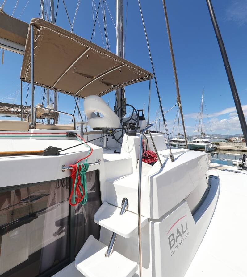 - DeckBathing platformBimini topCockpit tableCockpit/stern, outside showerDinghyElectric anchor windlassFlybridgeForward cockpitTeak cockpit