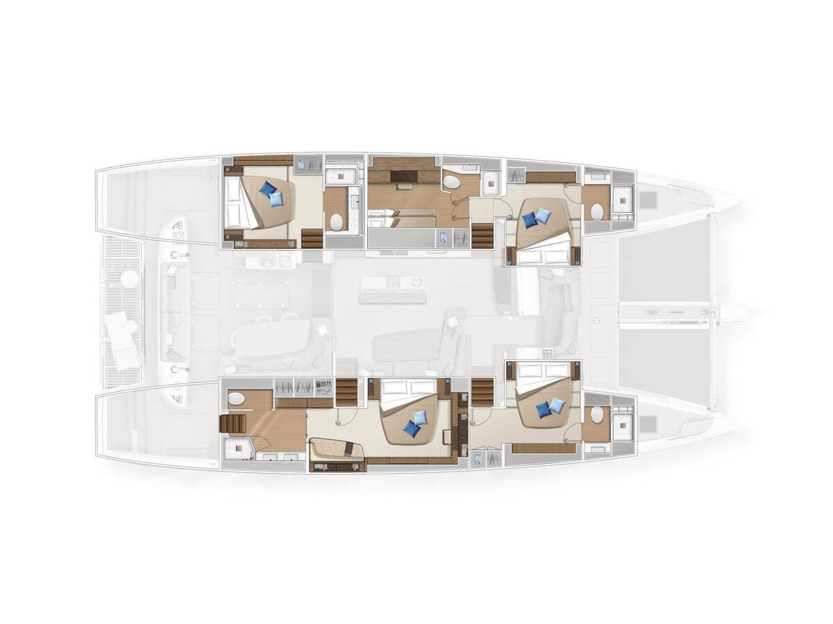 - DeckBathing platformBimini topCockpit tableCockpit/stern, outside showerDinghy with outboard engine GangwayGrill/Barbecue/PlanchaSprayhoodTeak cockpit