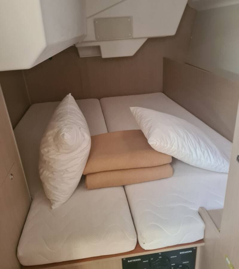 - DeckAnchor lineAnchor swivelBimini topBlack ballBlack conusBoat hookBosun's chair (Safe seat) (boatswain's chair)Canister for waterCockpit table with lightCockpit/stern, outside showerDinghyDinghy (byboat) pumpElectric anchor windlassFendersGangwayHawserImpeller, V-belt, oilfilterJerry cans for dieselMain anchor Mooring ropes Plastic bucketRepair box for dinghySpare anchor (Reserve, Auxiliary anchor)Spotlight / HeadlightsSprayhood Teak cockpitWater hose