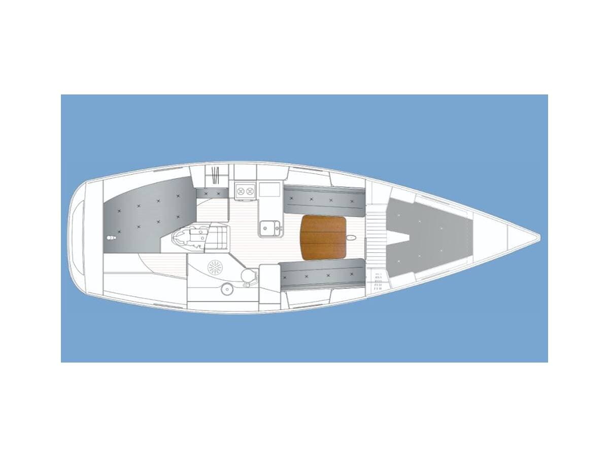 - DeckCockpit tableElectric anchor windlassSprayhoodTeak cockpitTeak deck