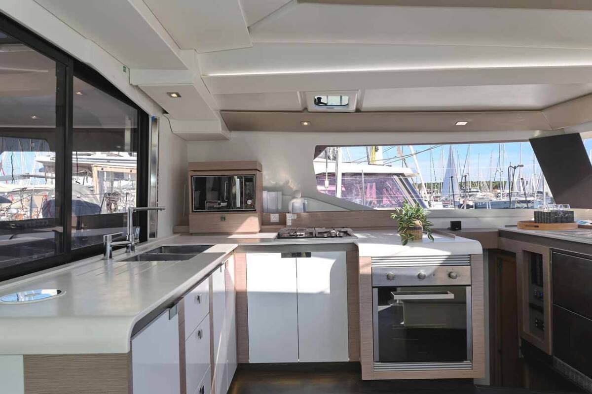 - GalleyGas bottlesHot waterKitchen utensils (Galley equipment, cutlery)MicrowaveRefrigerator