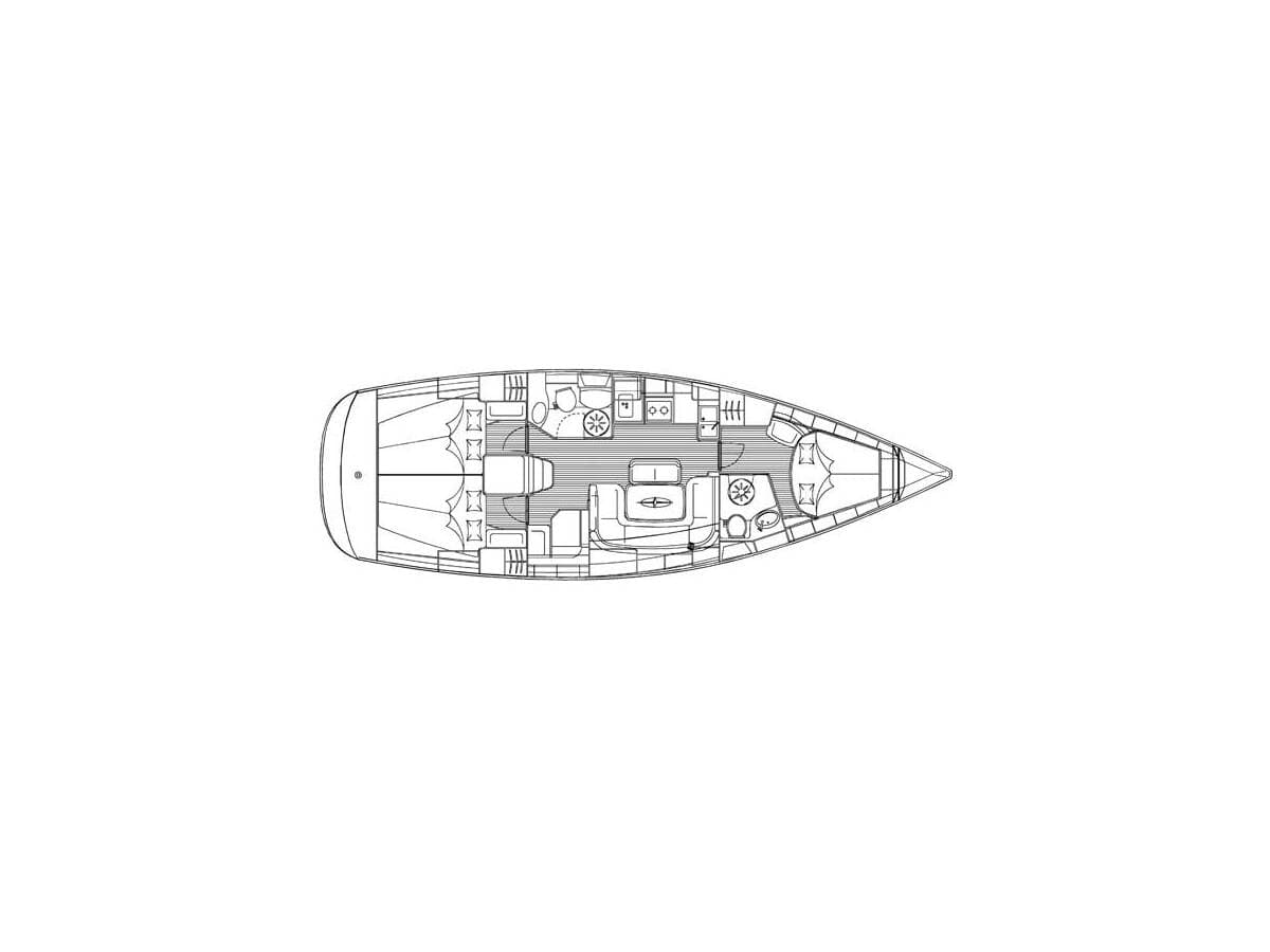 - DeckAnchor lineAnchor swivelBimini top Black ballBlack conusBoat hookBosun's chair (Safe seat) (boatswain's chair)Canister for water Cockpit table with lightDinghyDinghy (byboat) pumpElectric anchor windlassFendersGangwayImpeller, V-belt, oilfilterJerry cans for dieselMain anchorMooring ropesPlastic bucketRemote control for anchor winch with chain counter at helmRepair box for dinghyRound/globular fenderSpare anchor (Reserve, Auxiliary anchor)Spotlight / HeadlightsSprayhood Spring lineTeak cockpitWater hose