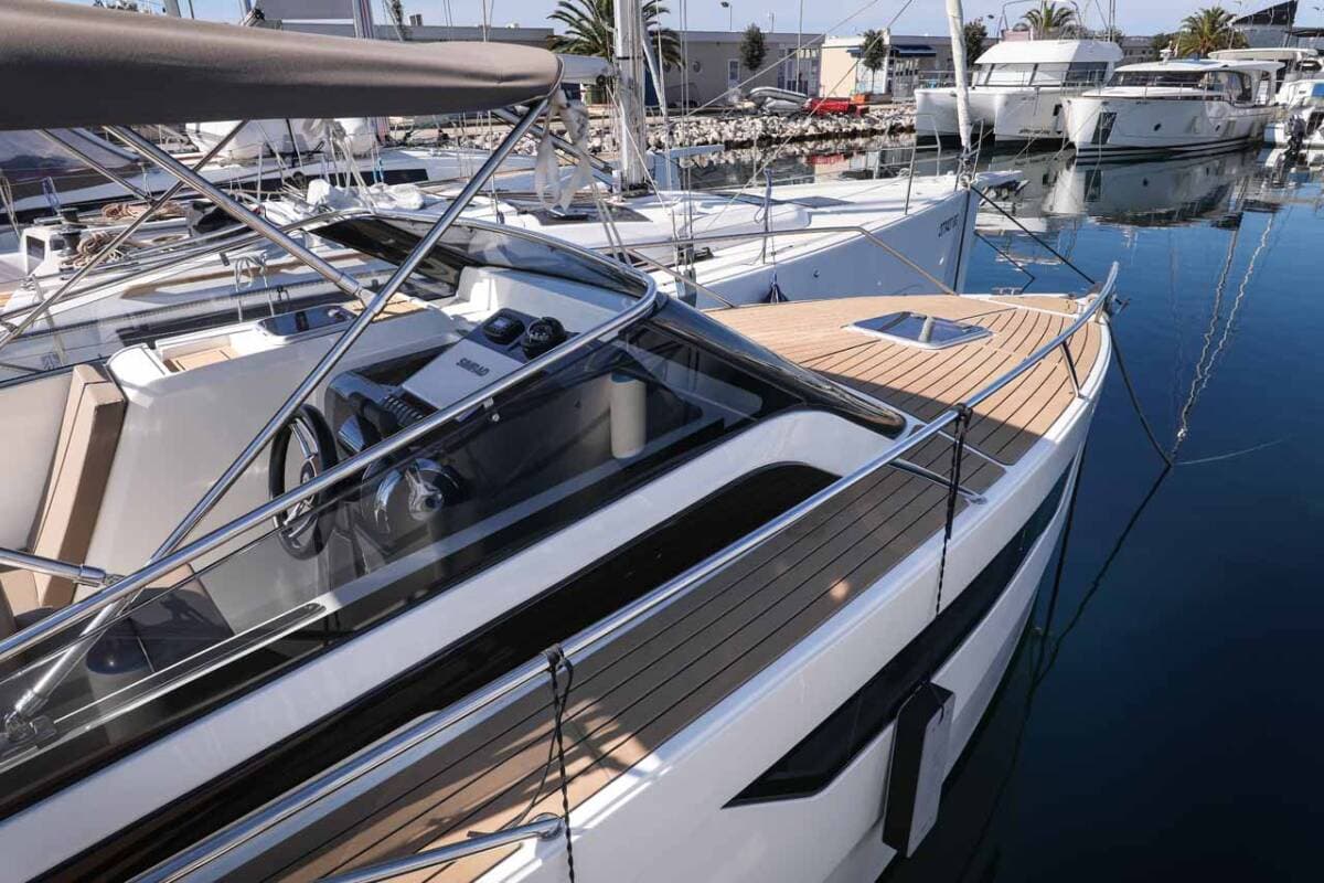 - DeckAnchor lineAnchor swivelBimini topBoat hookCanister for waterCockpit table with lightCockpit/stern, outside showerElectric anchor windlassFendersGangwayImpeller, V-belt, oilfilterLowerable cockpit tableMain anchorMooring ropes Plastic bucketRound/globular fenderSpare anchor (Reserve, Auxiliary anchor)Spotlight / HeadlightsSprayhoodSpring lineTeak cockpitTeak deckWater hose