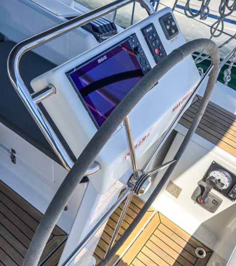 - Navigation3 blade folding propellerAutopilotBow thrusterBretonplotterGPS chart plotter - cockpitHand bearing compassHarbour guidesNavigation (Nautical) charts and nautical guide Navigation setRadar reflectorScreen Windex