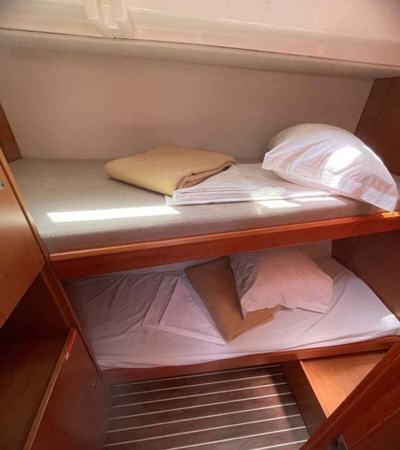 - DeckAnchor lineAnchor swivelBimini topBlack ballBlack conusBoat hookBosun's chair (Safe seat) (boatswain's chair)Canister for waterCockpit table with lightCockpit/stern, outside showerDinghyDinghy (byboat) pumpElectric anchor windlassFendersGangwayHawserImpeller, V-belt, oilfilterJerry cans for dieselMain anchor Mooring ropesPlastic bucketRepair box for dinghyRound/globular fenderSpare anchor (Reserve, Auxiliary anchor)Spotlight / HeadlightsSprayhoodTeak cockpitWater hose