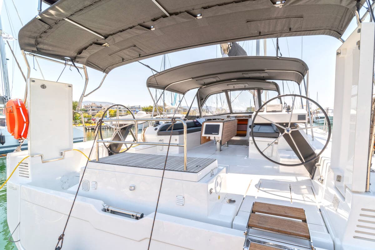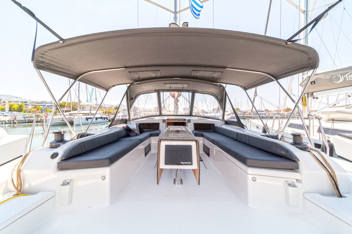 - DeckBimini topBoat hookCockpit tableDinghyDinghy with outboard engineFendersGangwayMooring ropes Sprayhood