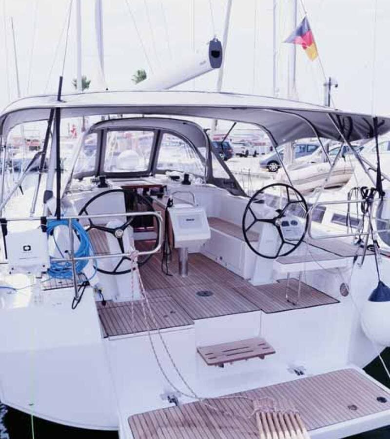 - DeckBimini topBlack ballBlack conusBoat hookBosun's chair (Safe seat) (boatswain's chair)Cockpit tableCockpit/stern, outside showerDinghyDinghy (byboat) pumpElectric anchor windlassFendersGangwayImpeller, V-belt, oilfilterMain anchorMooring ropes Repair box for dinghyRound/globular fenderSpare anchor (Reserve, Auxiliary anchor)Spotlight / HeadlightsSprayhoodTeak cockpitWater hose