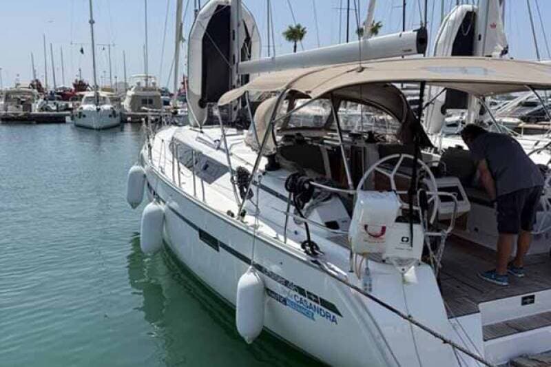 - DeckAnchor swivelBimini topBlack ballBlack conusBoat hookBosun's chair (Safe seat) (boatswain's chair)Cockpit tableCockpit/stern, outside showerDinghyDinghy (byboat) pumpElectric anchor windlassFendersGangwayHawserImpeller, V-belt, oilfilterMain anchor Mooring ropes Plastic bucketRepair box for dinghyRound/globular fenderSpotlight / HeadlightsSprayhoodTeak cockpitWater hose