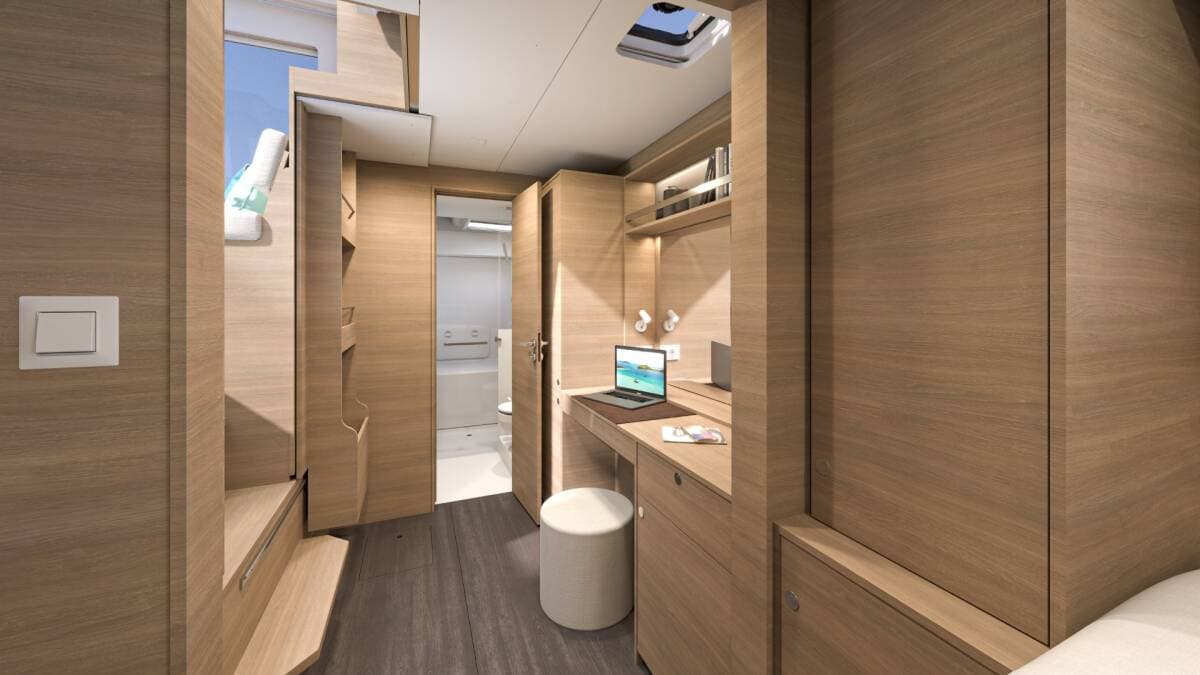 - DeckBimini topCockpit fridgeCockpit/stern, outside showerDinghy with outboard engine Electric anchor windlassTeak cockpit