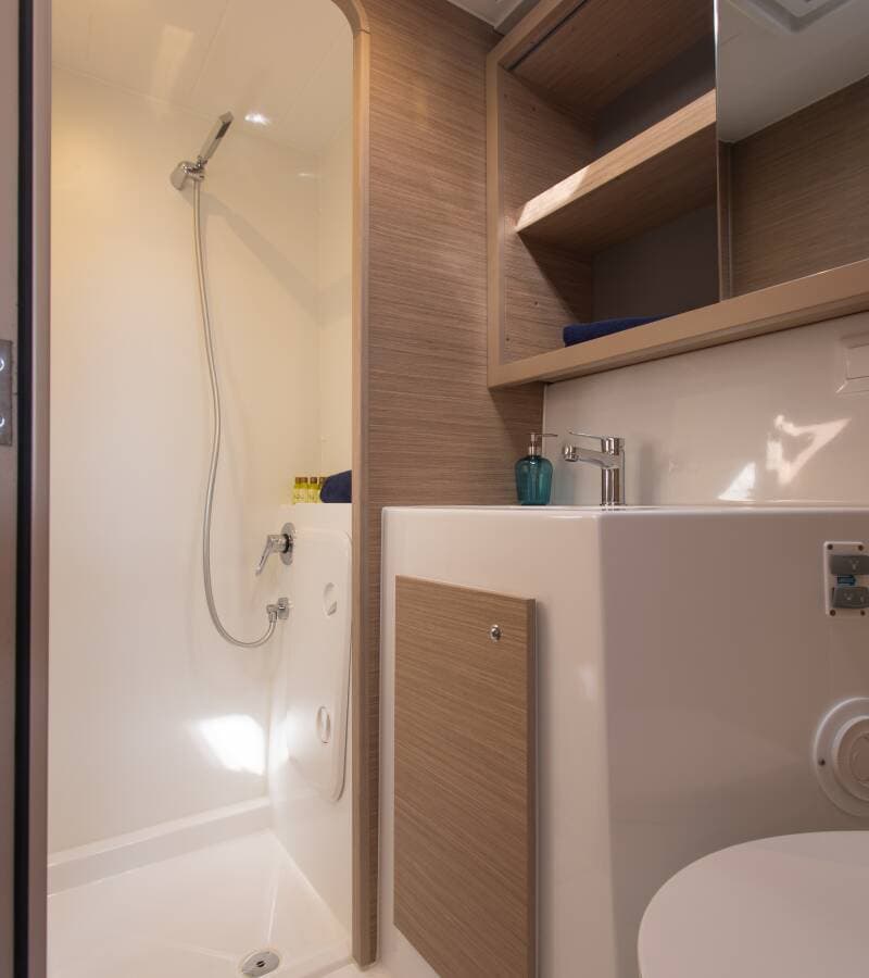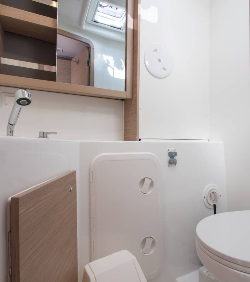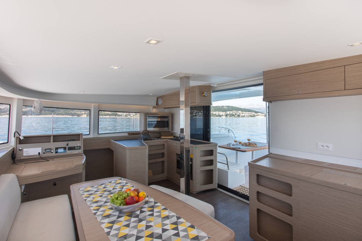 - DeckCockpit fridge Cockpit table Dinghy Electric anchor windlassOutboard engine Teak cockpit