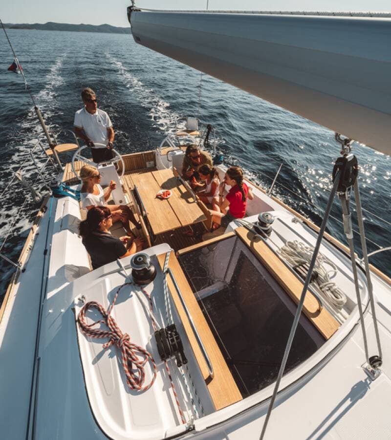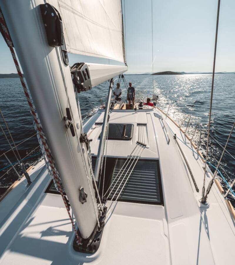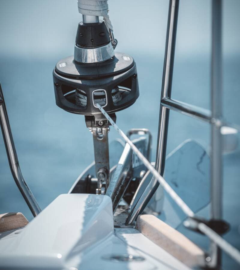- DeckAnchor lineAnchor swivelBimini topBlack ballBlack conusBoat hookBosun's chair (Safe seat) (boatswain's chair)Cockpit fridgeCockpit tableCockpit/stern, outside showerDinghyDinghy (byboat) pumpElectric anchor windlassFendersGangwayHawserImpeller, V-belt, oilfilterMain anchorMooring ropes Plastic bucketRound/globular fenderSpare anchor (Reserve, Auxiliary anchor)Spotlight / HeadlightsSprayhoodSpring lineTeak cockpitWater hose