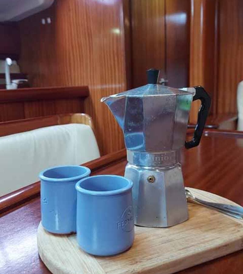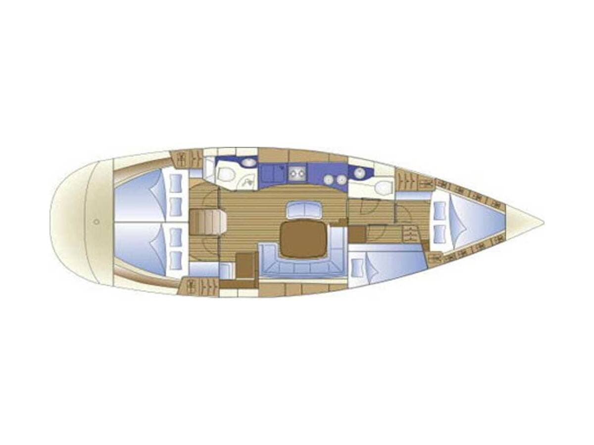- DeckAnchor lineAnchor winch remote controlBimini topBlack ballCockpit tableCockpit/stern, outside showerDinghyDinghy (byboat) pumpFendersGangwayImpeller, V-belt, oilfilterMain anchor Mooring ropes Plastic bucketRound/globular fenderSpare anchor (Reserve, Auxiliary anchor)Spotlight / HeadlightsSprayhoodSpring lineTeak cockpitWater hose