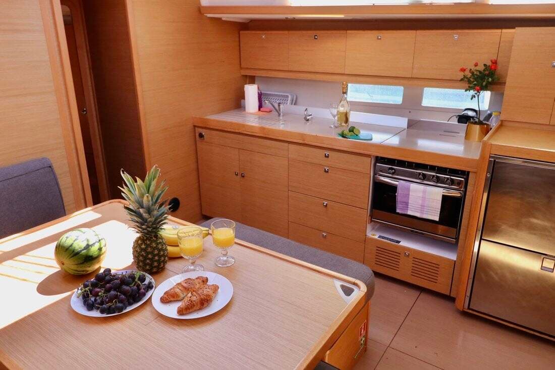 - GalleyCoffee machine Gas bottlesKitchen utensils (Galley equipment, cutlery)Oven RefrigeratorSink Wine cellar