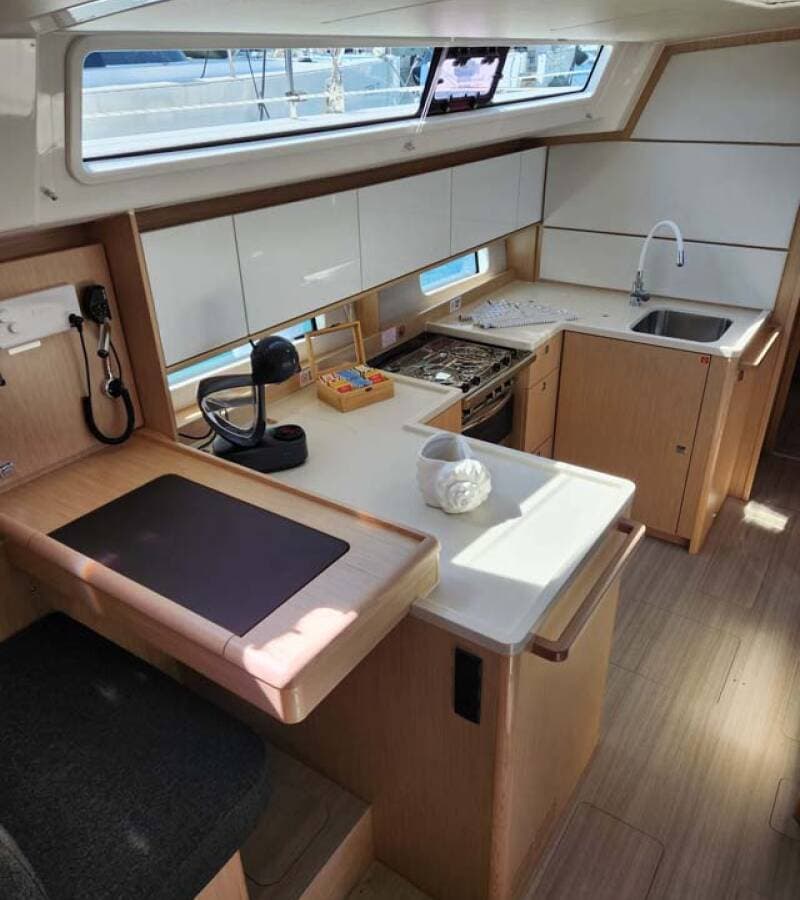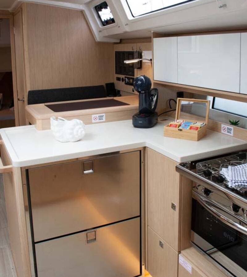 - GalleyCoffee machine Gas bottlesHot waterIce makerKitchen utensils (Galley equipment, cutlery)Refrigerator