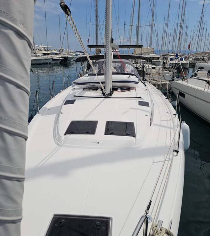 - DeckAnchor lineAnchor swivelBimini topBlack ballBlack conusBoat hookBosun's chair (Safe seat) (boatswain's chair)Canister for waterCockpit tableCockpit/stern, outside showerDinghyDinghy (byboat) pumpElectric anchor windlassFendersGangwayHawserImpeller, V-belt, oilfilterJerry cans for dieselMain anchor Mooring ropes Plastic bucketRepair box for dinghyRound/globular fenderSpare anchor (Reserve, Auxiliary anchor)Spotlight / HeadlightsSprayhoodSpring lineTeak cockpitWater hose