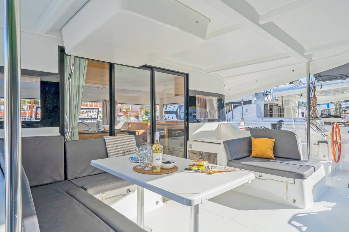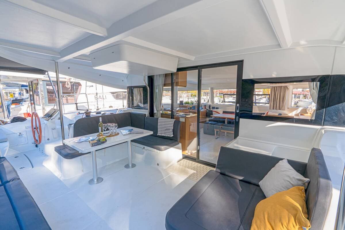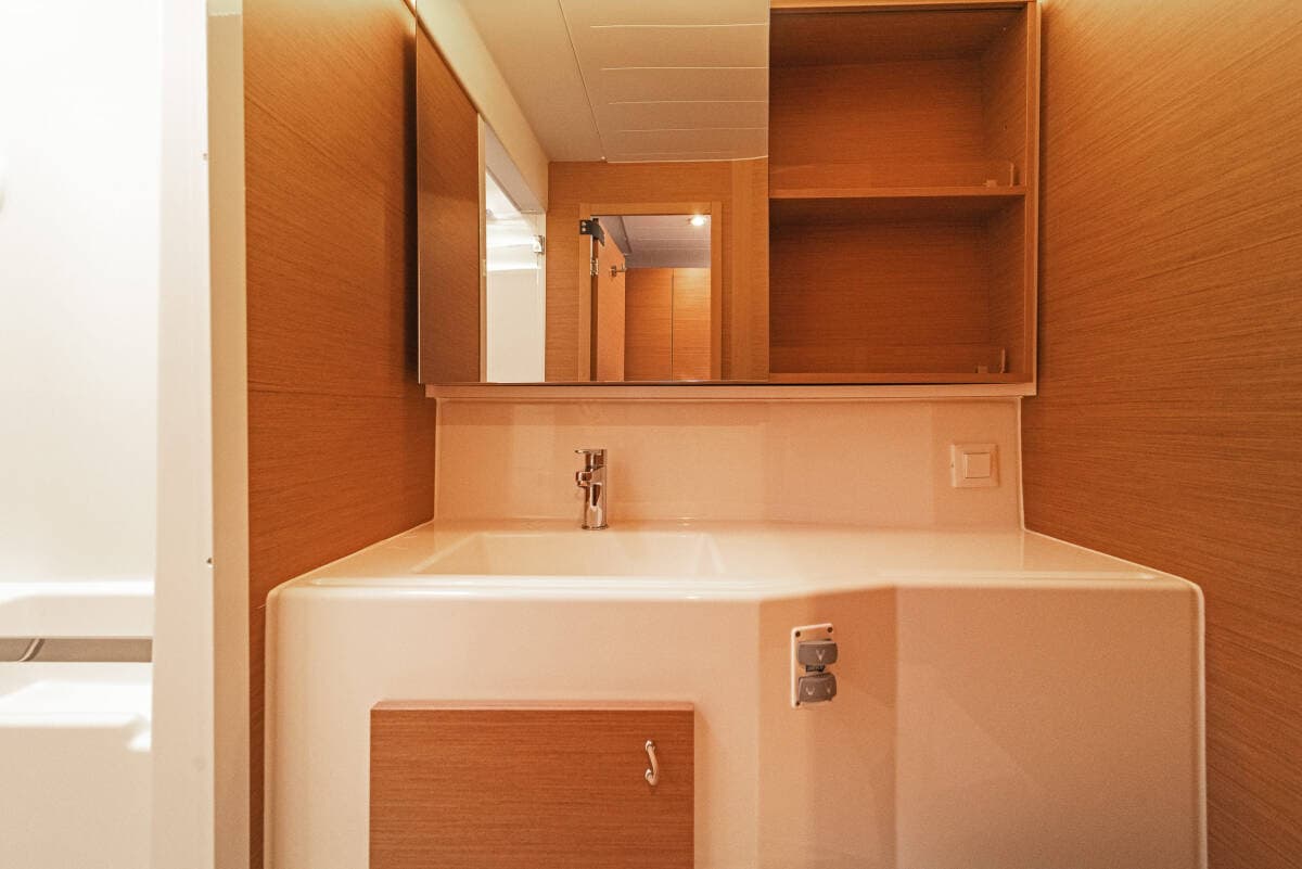 - Yacht electrics220V socketAir ConditioningBattery charger GeneratorShore power cableSolar panelsUSB charger for mobile phone and laptopWatermaker - desalinator