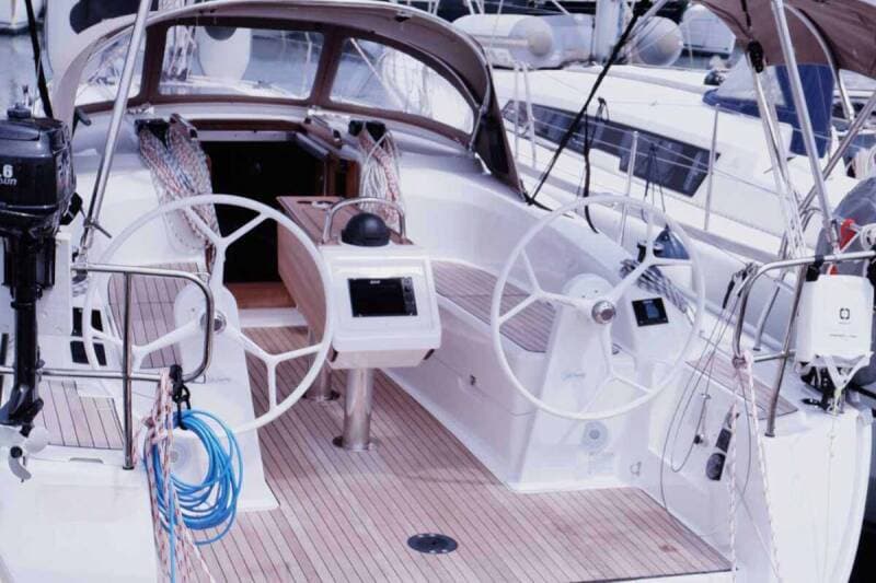 - DeckAnchor lineAnchor swivelBimini topBoat hookCanister for waterCockpit table with lightCockpit/stern, outside showerElectric anchor windlassFendersGangwayImpeller, V-belt, oilfilterLowerable cockpit tableMain anchorMooring ropes Plastic bucketRound/globular fenderSpare anchor (Reserve, Auxiliary anchor)Spotlight / HeadlightsSprayhoodSpring lineTeak cockpitTeak deckWater hose