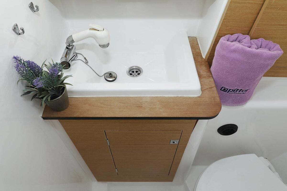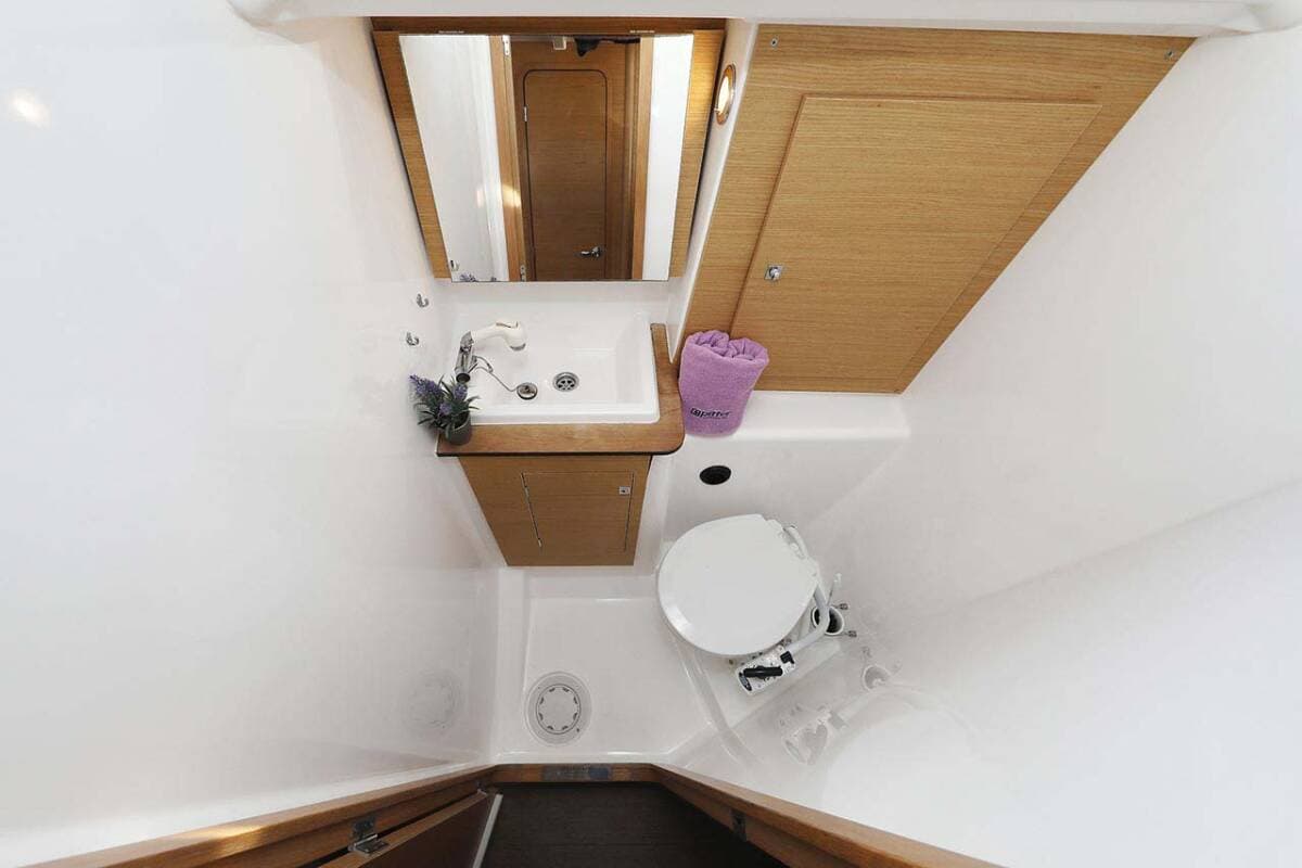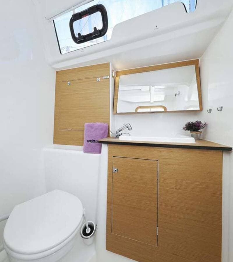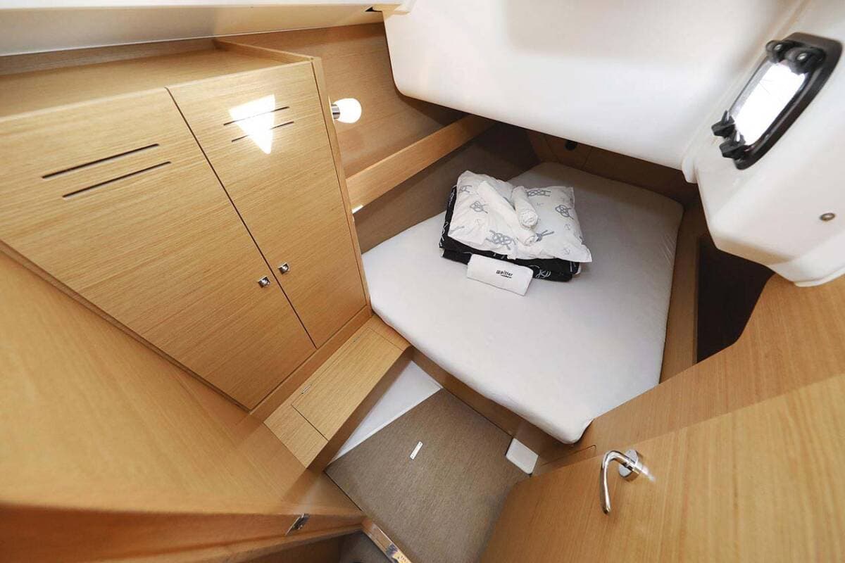 - DeckBathing platformBimini topCockpit/stern, outside showerDinghyMain anchor Sprayhood